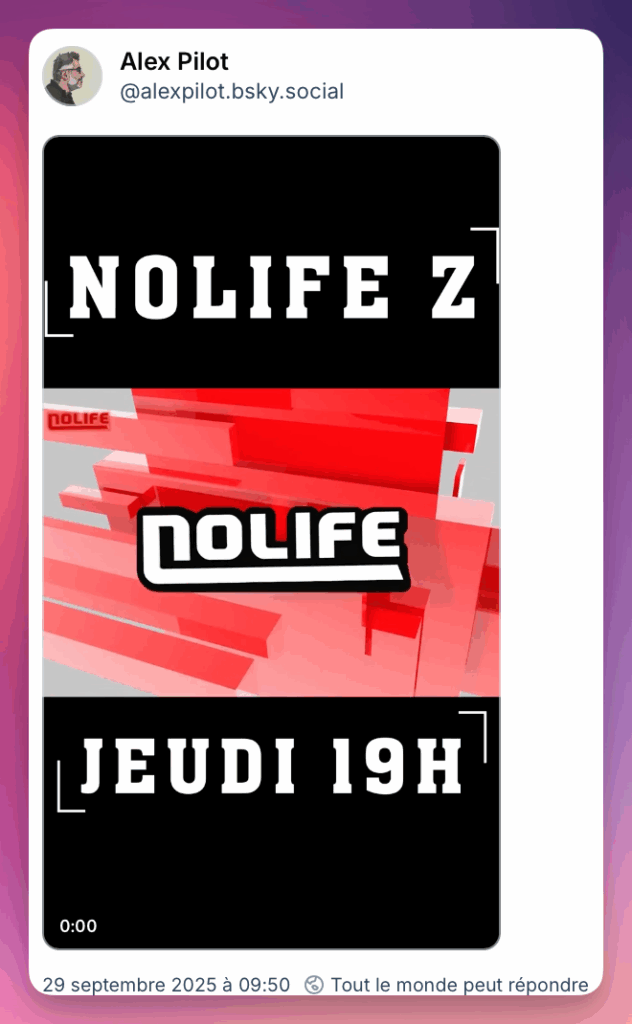 Par ailleurs, Alex Pilot nous a également annoncé, sur Bluesky, une soirée Nolife Z à suivre sur Twitch ce jeudi 2 octobre à partir de 19H00!! Rendez-vous demain soir pour une nouvelle soirée de bonheur et de (re)découvertes!!